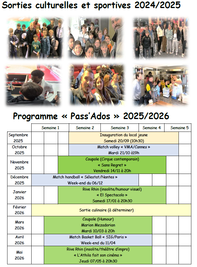 Actualitésdes ados Téléchargez la plaquette du Pass-Ados – Saison 2025/26 Téléchargez la plaquette d’inscription aux vacances de la Toussaint 2025 Téléchargez le Règlement Intérieur « Spécial Ados Vacances »